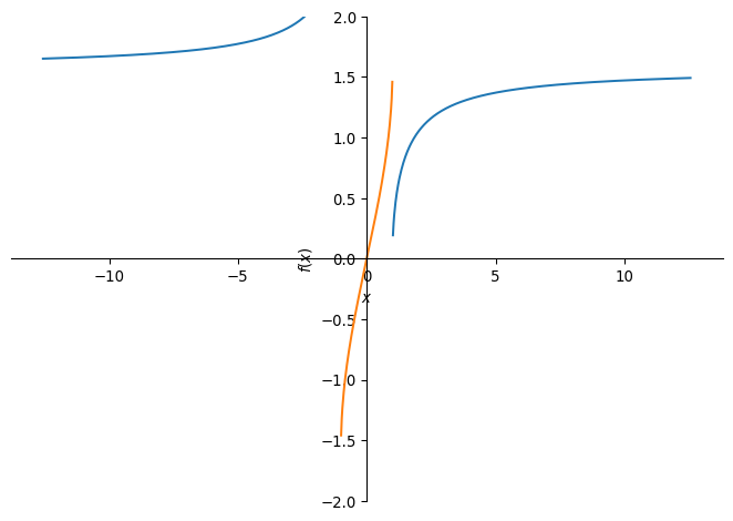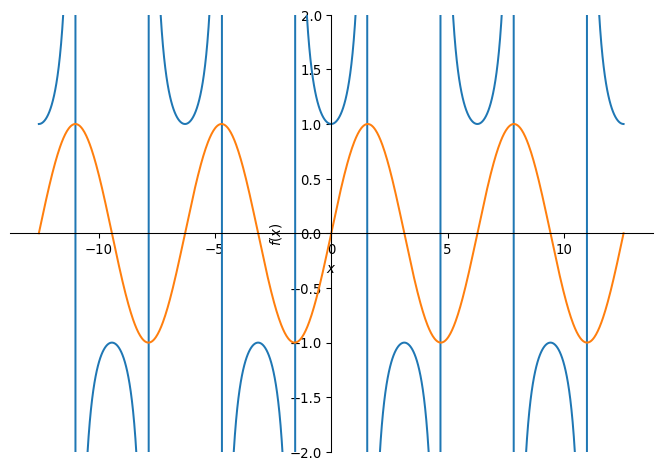 sp.plot(func2, func3, (x,-4*sp.pi,4*sp.pi), ylim = (-2,2))