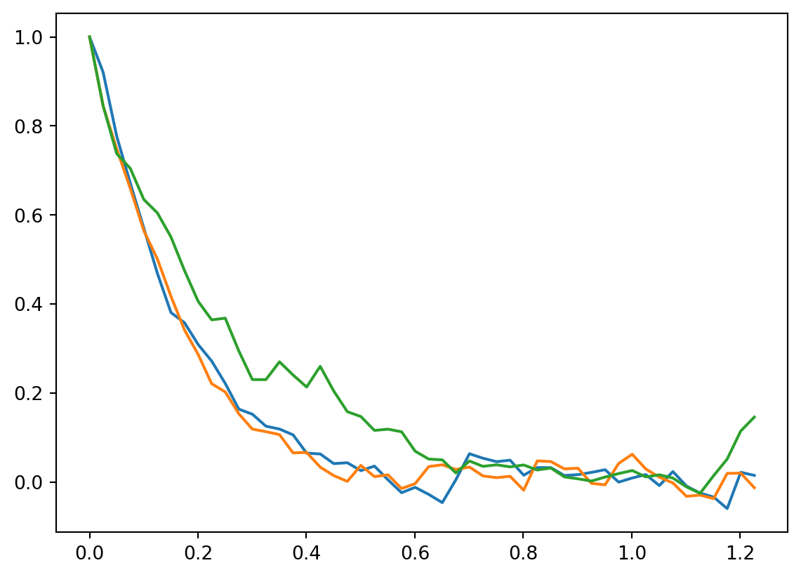 return vk_1 + h * (-gamma * vk_1 + rk_1)def langevinrealizations(h = 0.025, samples = 100, realizations = 10, v0 = 1, gamma = 5, D = 1):